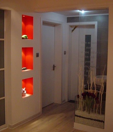 壁龕是室內(nèi)墻面設(shè)計(jì)中的點(diǎn)晴之處,不論家庭還是公共環(huán)境,都可用其來(lái)改善美化環(huán)境。壁龕是在墻面上開(kāi)洞,洞內(nèi)兩側(cè)做暗藏光,使洞中裝飾物展現(xiàn)一種紗罩一樣的朦朧感,也可在洞內(nèi)上方做點(diǎn)照明,以充分展示陳設(shè)物的精彩。壁龕洞可大可小,可長(zhǎng)可短,可方可圓,因環(huán)境不同而各異。