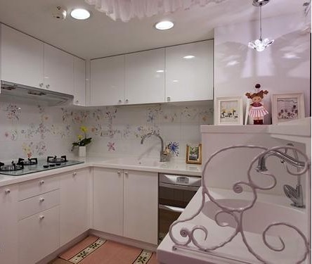 廚房。廚房一角的小裝飾,可愛水晶吊燈。都為廚房增加了一點小女生的情懷。
