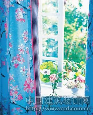 春雨連綿,花映門簾。四月的雨季,正是對窗抒懷,放松心緒的好時節(jié)。當(dāng)一個房間擁有兩扇可以觀賞室外自然風(fēng)景的窗時,可為這些窗搭配上色彩不同、圖案相對的布藝簾,如兩幅帶有圖案的窗簾居中,掛在內(nèi)側(cè),單色的兩幅窗簾放置在外側(cè),簾的長短根據(jù)窗的大小做出相應(yīng)的改變。又因為窗外即是自然的風(fēng)景,所以窗簾上的圖案都需要具有個性,這樣,它們的共存才能給人一種奇妙的感覺。