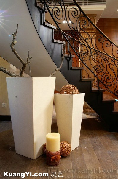 ▲螺旋向上式樓梯。這種樓梯優(yōu)點(diǎn)在于具有強(qiáng)烈的動態(tài)美,多在廳堂偏中部位旱地拔蔥。由于不靠墻,圍欄不能借助墻體,需加上透空欄桿,這就更好地表現(xiàn)了樓梯的藝術(shù)之魅。但這種樓梯由于每一段跨度較多,因此安全性較差。有老人和學(xué)齡前兒童的家庭,建議慎重使用。