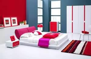 櫻桃紅的床頭軟包配上喜氣洋洋的紅色床上用品,非常適合新婚夫妻選用。床屏的全弧形符合人體功能學(xué),睡在上面非常舒服。上海裝潢網(wǎng)