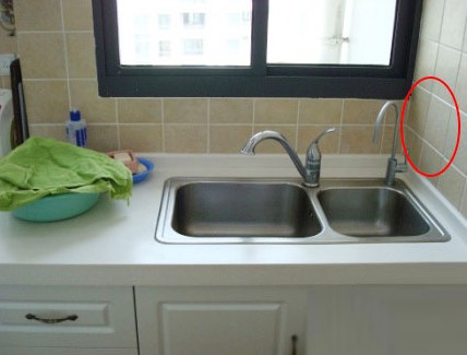 定制櫥柜時(shí)沒(méi)有考慮好水槽的款式、尺寸,以至于本來(lái)很大的空間,現(xiàn)在只能放一款小尺寸水槽,而且離墻距離很近。大件東西洗不了,胳膊常會(huì)磕碰墻,整體搭配極不協(xié)調(diào),想換都難!