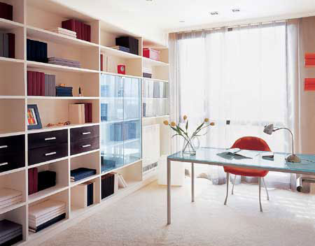 在設(shè)計新概念書房時,首先對你的藏書來個大整理?;逎D深的研究類,輕松消閑的娛樂類,技術(shù)應用類,感人肺腑的小說類,將所有書籍分門別類整理好,使之井然有序,方便參閱。上海裝潢網(wǎng)