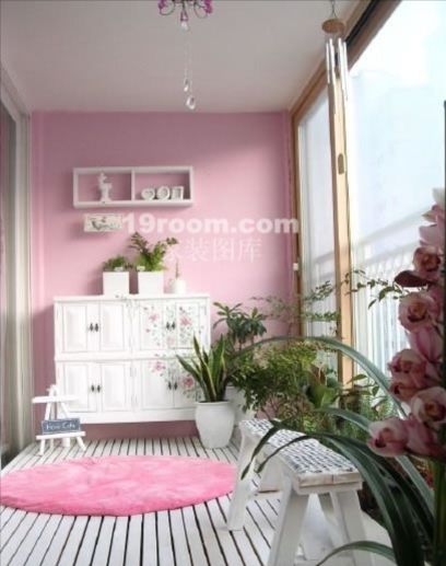 除綠色植物、花卉等能起到裝飾陽臺的作用外,陽臺側(cè)墻面、地面也是裝飾美化的重點(diǎn)。例如,可以整齊有致地在側(cè)墻上掛置富有裝飾韻味的陶瓷壁掛、掛盤等裝飾品,有的隔墻還可做成博古架的形式,以供放置裝飾器物。在光滑素雅的墻面上,也可掛置用柴、草、葦、棕、麻等材料做成的編織物。陽臺的地面可利用舊地毯或其他材料鋪飾,以增添行走時的舒適感。