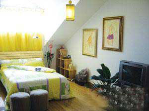 這樣的臥室比較多:斜頂中凹陷一大塊面積形成天窗(俗稱老虎窗)。一般,這樣的臥室室內(nèi)空間面積不大,但斜頂凹陷的天窗開口很大,無論通風(fēng)和采光條件都很好。 上海裝潢網(wǎng)