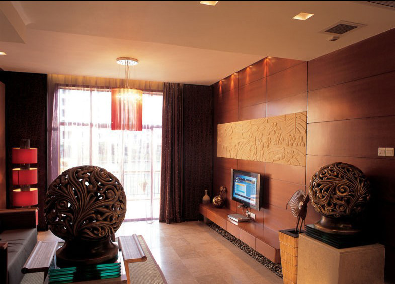 這個案例的套內(nèi)面積有280平,在定裝修風格的時候,業(yè)主同設計師都費了很多心思。居室憑湖臨風,有優(yōu)美的人造湖景,業(yè)主在討論風格定位時請設計師參考。根椐這樣一個自然環(huán)境設計師最終確定了以東南亞風格為主題的設計定位,此類風格的成功設計案例應該說并不鮮見。如何把簡約時尚的家居概念溶入設計中并能體現(xiàn)其特點是本案的設計重點。