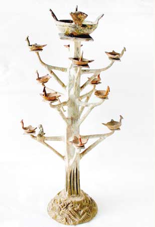 從質(zhì)地說,除了陶燈、釉陶燈、瓷燈、青銅燈以外,還出現(xiàn)了鐵燈、玉燈和石燈。從形式說,除座燈之外,不僅出現(xiàn)了吊燈,而且多枝(又稱“百花燈”)也很流行。漢代的多枝燈,一般為一個燈座之上支撐著高低錯落幾個至十多個燈盞。多枝燈增強了照明的亮度,充分體現(xiàn)了勞動人民的創(chuàng)造才能,它不僅是燈具,而且是精美的工藝品。