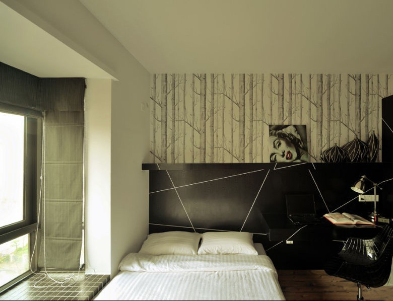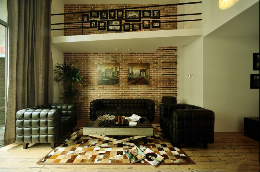 皮質(zhì)的個性家具,復古的背景墻,這一切飾品皆由這個屋子的主人親自挑選。