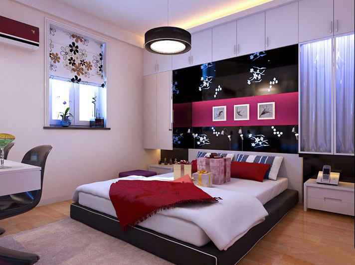 臥室是整個房子里最大空間的一個房間里,它的功能除了睡眠外,還附加書房的功能,設(shè)計合理,有條不紊,空間錯落有致。
