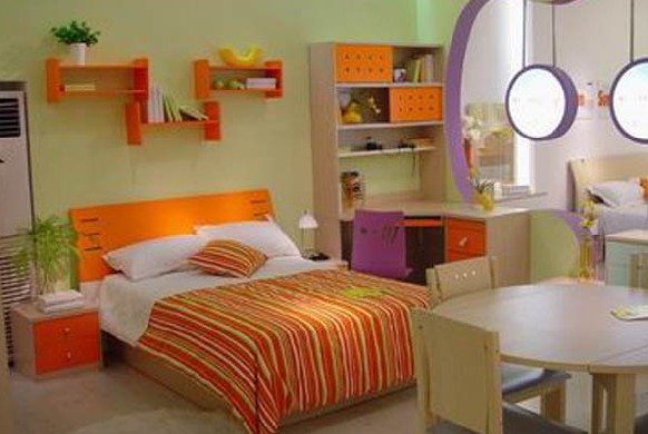兒童的精力充沛,活動(dòng)量大,為了盡可能節(jié)省空間,留出最大空間用做活動(dòng)天地,家具以靠墻擺放為佳。床位可選擇光線相對(duì)暗一些的墻角,緊靠著的是在窗戶旁的小書桌,在床的另一側(cè),用來擺放衣柜和收納。