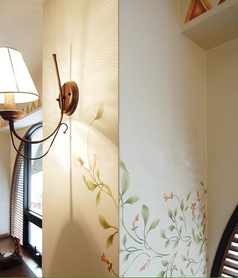 A:第一次畫(huà)難免會(huì)不熟練,建議可以參考花布或花草圖案,將喜歡的花草放大后,描在墻面上,然后上色。