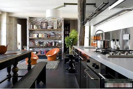 如果廚房空間足夠大,則作為廚房主體的櫥柜可盡量選擇鮮亮、濃重的色彩,增加視覺上的跳躍性,使櫥柜檔次加分。在選擇時(shí)一定要注意,既要實(shí)用,又要有裝飾性,同時(shí)還要與整體和諧統(tǒng)一。