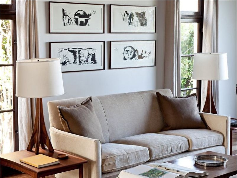 從沙發(fā)到燈飾、茶幾的線條都以簡潔為主,唯獨(dú)客廳的背景墻上的裝飾畫將我們帶回純真年代。
