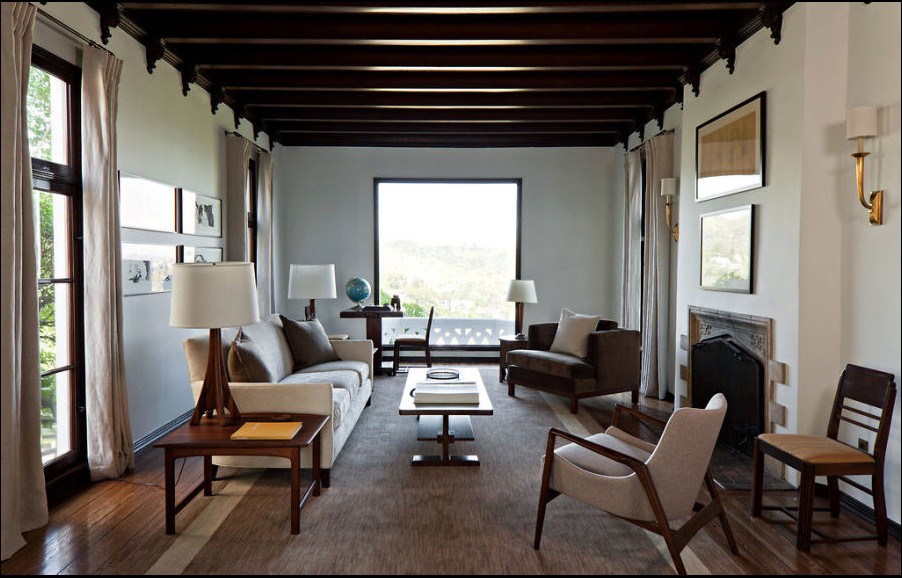客廳全景,窗外是是山景