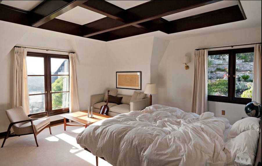零亂的臥室,米白色的床上用品,剛性中透著儒雅溫馨