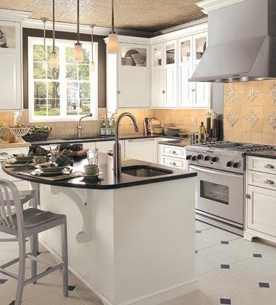 1、古典風(fēng)格——社會(huì)越發(fā)展,反而越強(qiáng)化了人們的懷舊心里,這也是古典風(fēng)格經(jīng)久不衰的原因,他的典雅尊貴,特有的親切與沉穩(wěn),滿足了成功人士對(duì)它的心里迎合。傳統(tǒng)的古典風(fēng)格要求廚房空間很大,u型與島型是比較適宜的格局形式。在材質(zhì)上,實(shí)木當(dāng)然視為首選,它的顏色、花紋及其特有的樸實(shí)無華為成熟人士所推崇。