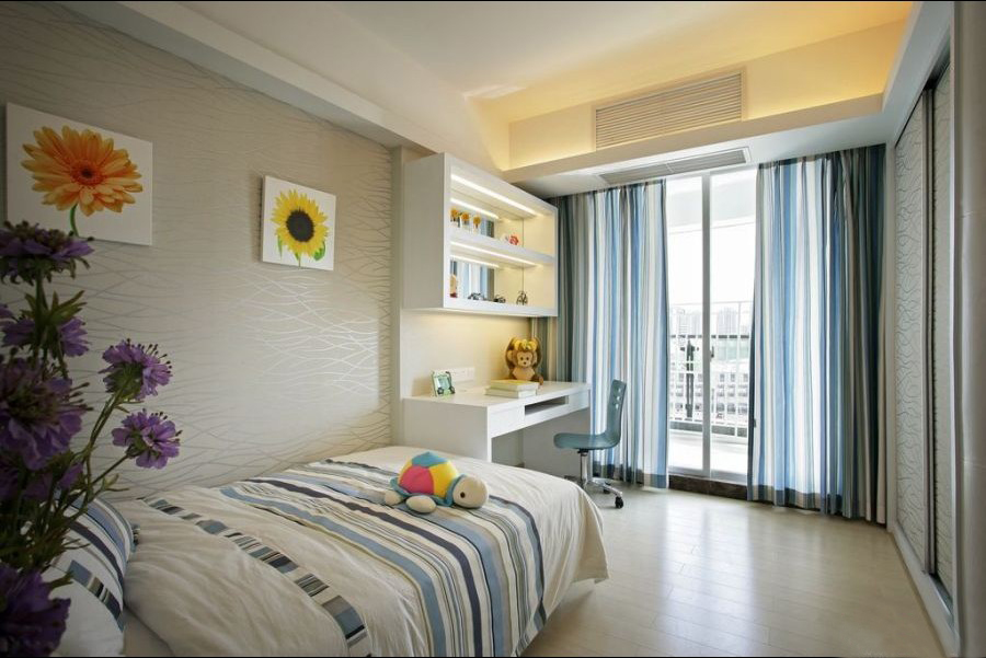 在典型的現(xiàn)代風(fēng)格設(shè)計(jì)中,裝飾的主題往往是窗外的風(fēng)景,或是一墻時(shí)尚的壁紙,或是一套漂亮的椅子,或是個(gè)性十足的飾品擺件。這樣的書(shū)桌,簡(jiǎn)潔方便且非常實(shí)用,擺放在臥室里非常適宜。