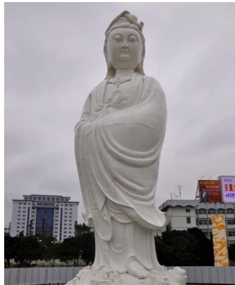 二十九日,記者在“中國瓷都”福建德化的瓷都廣場,見識了最新亮相的世界最大露天瓷雕、德化首座城雕“渡海觀音”:高六點(diǎn)二米,重六噸,以德化明代瓷圣何朝宗大師的作品為范本,由國家級工藝美術(shù)大師蘇清河領(lǐng)銜打造,歷經(jīng)兩年始竣工。