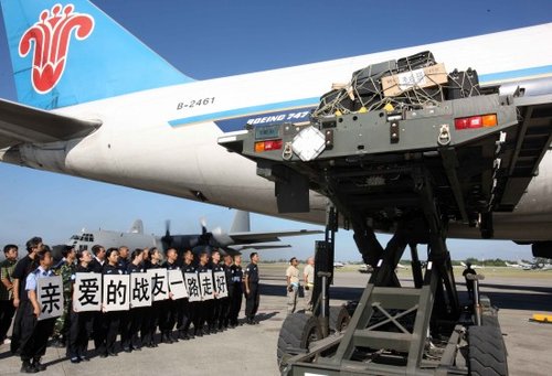 新華網(wǎng)太子港1月17日電 在海地地震中遇難的8名中國(guó)維和人員的靈柩17日由中國(guó)南方航空公司一架包機(jī)運(yùn)送回國(guó)。