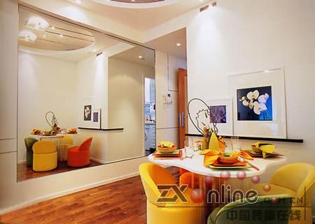 鏡子是擴(kuò)展室內(nèi)空間的不二法門(mén),在適當(dāng)?shù)奈恢迷鲈O(shè)一面鏡子,能令有限的空間變得無(wú)限。在客廳或飯廳的一旁裝上一面大鏡,能有效擴(kuò)大空間,增加室內(nèi)深度,是室內(nèi)設(shè)計(jì)中不可多得的材料。海裝潢網(wǎng)
