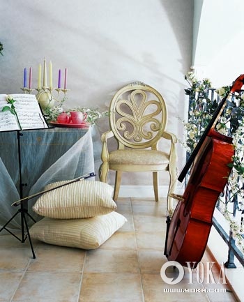 大提琴柔美的線條,與同樣西式彎曲線條感十足的家具擺放在一起,不僅彰顯了主人的愛好,同時(shí)也為居室劃分出了一塊輕松、舒暢的裝飾樂(lè)園。