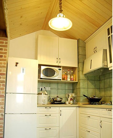現(xiàn)在的戶型設(shè)計,多將廚房面積加大,或是與餐廳連為一體,許多人也仿效國外的廚房設(shè)計,把廚房設(shè)計成餐廚一體化,甚至是餐廚客一體化。這種設(shè)計固然有其積極的一面,主婦在操勞時,在她的視線中始終有家人的陪伴,很人性化。但考慮到國人的飲食習(xí)慣,專家建議這種設(shè)計還是慎用,尤其是喜歡在家享用美食的人士。如果真是就喜歡這種風(fēng)格設(shè)計,不妨改良一下,可以把烹飪灶臺“關(guān)閉”起來,四周用玻璃材質(zhì),既不擋視線,也可以阻隔油煙。