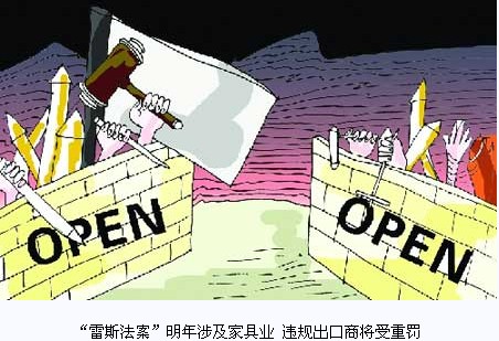 2010年4月1日起,美國《雷斯法案 》覆蓋范圍將擴大至所有木制家具產品。法案要求,進口商在每次船運進口植物或林產品時都要提供原料來源和樹重的基本申報。若產品原料來源被界定為非法,美國將有權對產品進行罰沒,甚至有權對出口商及采購商進行監(jiān)禁。該項法案將對中國木制品出口企業(yè)產生重大負面影響,國內不少業(yè)內人士表示,這項法案是美國發(fā)起的最苛刻貿易壁壘。