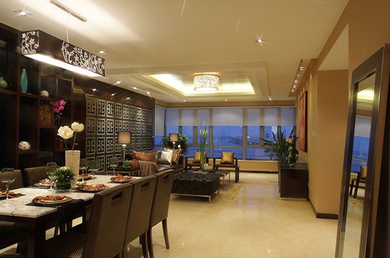 2、客廳采光要明亮 ,所謂風水學上的明堂暗室。白天要保證自然光的采用,晚上燈光要以主燈為主,配合局部照明,來滿足家人生活要求,燈光的色彩和溫度會使室內(nèi)空氣上、下對流,產(chǎn)生好風水,但同時要避免眩光和五行的平衡,所謂的五行度!
