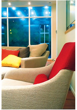 按常規(guī)來說,無論是傳統(tǒng)風(fēng)格中的東方形式還是西方形式,家具、門窗的顏色搭配都以深色為主,但現(xiàn)代時(shí)尚風(fēng)格的居室中的用色越來越大膽、奔放,比如這套由龍發(fā)設(shè)計(jì)師創(chuàng)作的前衛(wèi)派作品,其大紅大綠的搭配,令人耳目一新。設(shè)計(jì)手法是簡(jiǎn)潔、明了,拋棄眾多繁瑣設(shè)計(jì),注重空間色彩及結(jié)構(gòu)的挖掘。綠色調(diào)整面墻的造型書架和橙色墻面,配以異形吊燈,讓這個(gè)空間充滿了幾分靈性,原本寧靜的地方變得“熱鬧”了起來,別有一番情趣。