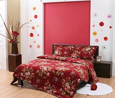 用華麗的大型菊花花紋裝飾的床品,在自然的棉緞質(zhì)地上印上了當(dāng)代印象派藝術(shù)觀念的杰作。在“自然中國(guó)”的流行概念下回歸自然、回歸中國(guó)。具有東方文化底蘊(yùn)的佛頭蠟燭也很契合整個(gè)居室的格調(diào)。