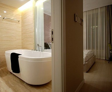 客房重點(diǎn)在于簡(jiǎn)潔方便、如小寫(xiě)字臺(tái)、小衣柜、壁燈、臺(tái)燈、電話等等都應(yīng)備齊,以顯示出主人平等待客的文明和禮貌。