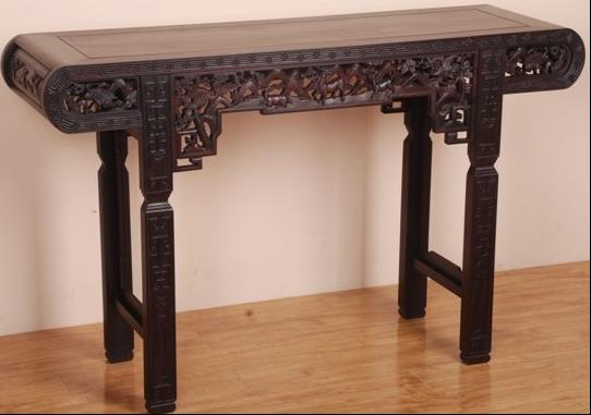 琴桌,也歷來是文人雅士的鐘愛,琴、棋、書、畫,可見琴在古代士子文化中的地位。本場拍品也精選了一款大葉檀材質(zhì)的精美琴桌,這款琴桌名為鹿鶴同春琴桌,長1.35、高0.85、寬0.40米,此琴桌做工洗練、精致,形制中規(guī)中矩,兩端的書卷造型古樸中亦見文章精神,將六藝之“樂”詮釋的恰到好處。鹿鶴同春更取天下皆春,萬物欣欣向榮之意。
