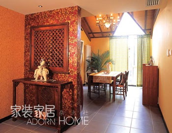 本案例以另類中式與東南亞裝飾元素為主線,將業(yè)主的生活理念和人生理念做了一次立體的闡述。設(shè)計(jì)師在了解業(yè)主的喜好后,將風(fēng)格定位于中式與自然的融合。在眾多自然風(fēng)格中選擇哪種與中式融合是設(shè)計(jì)的重點(diǎn)。地中海風(fēng)格具有自然氣息,但其因地理位置的緣故,許多環(huán)境元素和裝飾手法都偏于歐式,多多少少帶有歐式的遺風(fēng),所以它第一個被排除了。鄉(xiāng)村風(fēng)格雖有自然感覺,但我們所接觸的多是美式鄉(xiāng)村或法式鄉(xiāng)村,與地中海風(fēng)格一樣,都有歐式傾向,所以也被排除了。日式亦有自然感覺,但設(shè)計(jì)師認(rèn)為日式實(shí)為中式的一個支脈,其根髓為中國古代的禪宗思想,所以在后期很有可能與中式過分融合而導(dǎo)致無法區(qū)分,所以也不可以。思來想去,唯有東南亞風(fēng)格的特點(diǎn)能與中式風(fēng)格完美融合,從而成為設(shè)計(jì)師的首選。