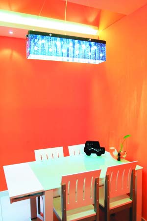 餐廳是由原來(lái)的一個(gè)臥室改造的,設(shè)計(jì)師殷勇選用了大膽的橙色作為裝飾,這讓崔鵬和馬天婧開(kāi)始很不能接受,覺(jué)得太艷麗了,但等裝修結(jié)束后,夫妻倆看到整體的效果,都覺(jué)得十分的滿意。