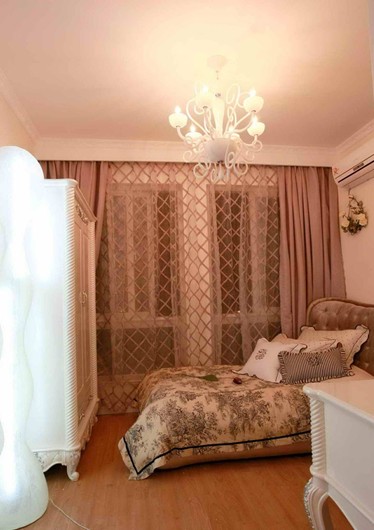 臥室窗簾是最值得花心思挑選的,一般選用質(zhì)地較厚實(shí)的面料,能夠有效地阻隔光線和噪音,不影響睡眠,如果可能的話,還可以在臥室窗簾外加一層遮光布。