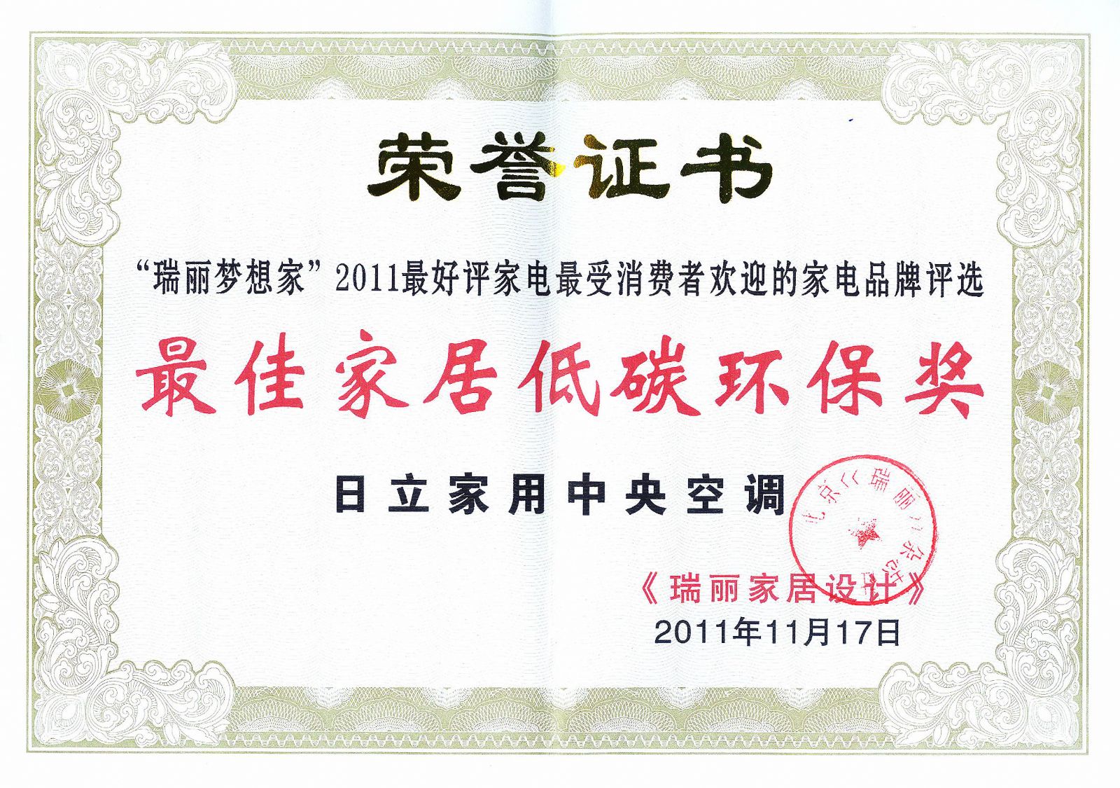 近日,由《瑞麗家居設(shè)計(jì)》雜志主辦,堪稱家電評(píng)選界“奧斯卡”獎(jiǎng)的“瑞麗夢(mèng)想家” 2011年最好評(píng)家電—最受消費(fèi)者歡迎的家電品牌評(píng)選揭曉,其中日立家用中央空調(diào)憑借近年來不斷推陳出新,在節(jié)能、省電、環(huán)保等方面步步領(lǐng)先而深受消費(fèi)者喜愛,榮獲“最佳家居低碳環(huán)保獎(jiǎng)”,同時(shí)也是唯一入選的家用中央空調(diào)產(chǎn)品。