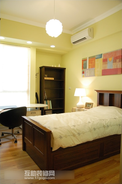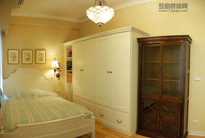 床鋪邊分別有化妝臺、五斗柜及抽屜式矮柜,且都為尺度低的柜體,非常適合躺下睡覺時的視野水平,不致于造成精神緊張與壓迫感。