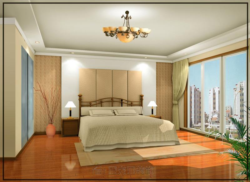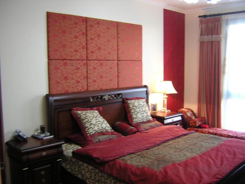 臥室中床頭胡桃木在紅色壁紙的襯托下,構(gòu)成了臥室的主題——沉穩(wěn)與和諧。羊皮床頭燈和室外透進的光線相呼應(yīng),造就了可變換的光環(huán)境,靠近窗邊的貴妃榻營造出溫馨高雅而又浪漫的氣息。試想在這里揉揉發(fā)酸的雙眼,把自己仍進軟軟的大床,朦朧中墻壁上光與影奏響的和諧旋律,是否會讓人在半夢半醒間飄飄燃起來?大腦神經(jīng)此時可以拒絕大千世界一切的繁蕪叢雜,遠離精神領(lǐng)域所有的煩惱壓抑,只讓心靈在次深呼吸。在使用功能上,設(shè)計師為主臥設(shè)立了獨有的大更衣間,使主人在使用上更方便、更具私密性