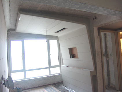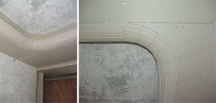 客廳四角設(shè)計(jì)成圓弧形,竣工后的效果應(yīng)該是很不錯(cuò)的,但同時(shí)施工的難度也隨之增加了。