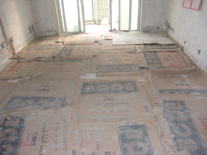 除了現(xiàn)場(chǎng)的施工質(zhì)量,其它方面,我們也都有嚴(yán)謹(jǐn)規(guī)范的制度。為了保護(hù)已經(jīng)鋪裝好的地磚,師傅們?cè)谏厦驿佋O(shè)了厚厚的紙板。