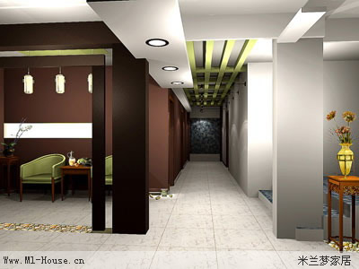 又如在床前鋪一塊綠色或藍(lán)色的地毯,也可帶來(lái)豐富的想象,綠色或藍(lán)色可看成是江河湖海,要是再鑲上“帆船、海鷗”的圖形,床頭便有了“船”的意境,想象中也有了一個(gè)廣闊的美感。又如天花板吊頂若用磨砂工藝玻璃,但在圖案的選擇上不必太程式化,完全可以用一些點(diǎn)、線和不規(guī)則的小圖案,它在彩色燈光的映襯下,頗有神秘感。