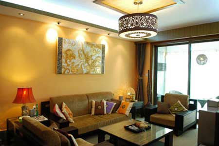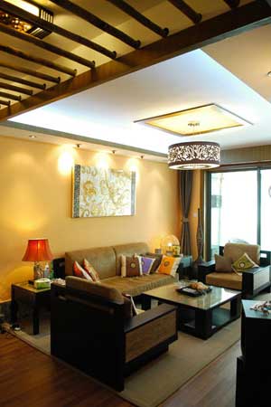 概要: 沙發(fā)無論是色彩還是造型都與整個房間的風(fēng)格很搭調(diào),莊嚴(yán)高貴的紫檀木配上大氣的布墊,營造出古樸內(nèi)斂的氛圍,下面鋪了席子,是懷舊的自然情懷?! ⊙b飾品的搭配對于風(fēng)格的完整也很重要,設(shè)計師特意挑選了石座人像臺燈、藤球燈、和傳統(tǒng)圖騰裝飾畫。這些都具有明顯的中華民族特征,是本次設(shè)計風(fēng)格的完美點化物。