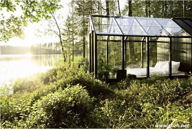 全透明的玻璃臥室設(shè)計(jì)。整個(gè)臥室被純天然的自然風(fēng)景所包圍,讓居室內(nèi)邊的十分清新自然。玻璃打造的墻面,使得采光效果非常的良好,這樣的設(shè)計(jì),一定要是隱蔽的地方,不然業(yè)主的一舉一動(dòng)都被曝光。所以,這款設(shè)計(jì),算得上是比較罕見(jiàn)的設(shè)計(jì)了。