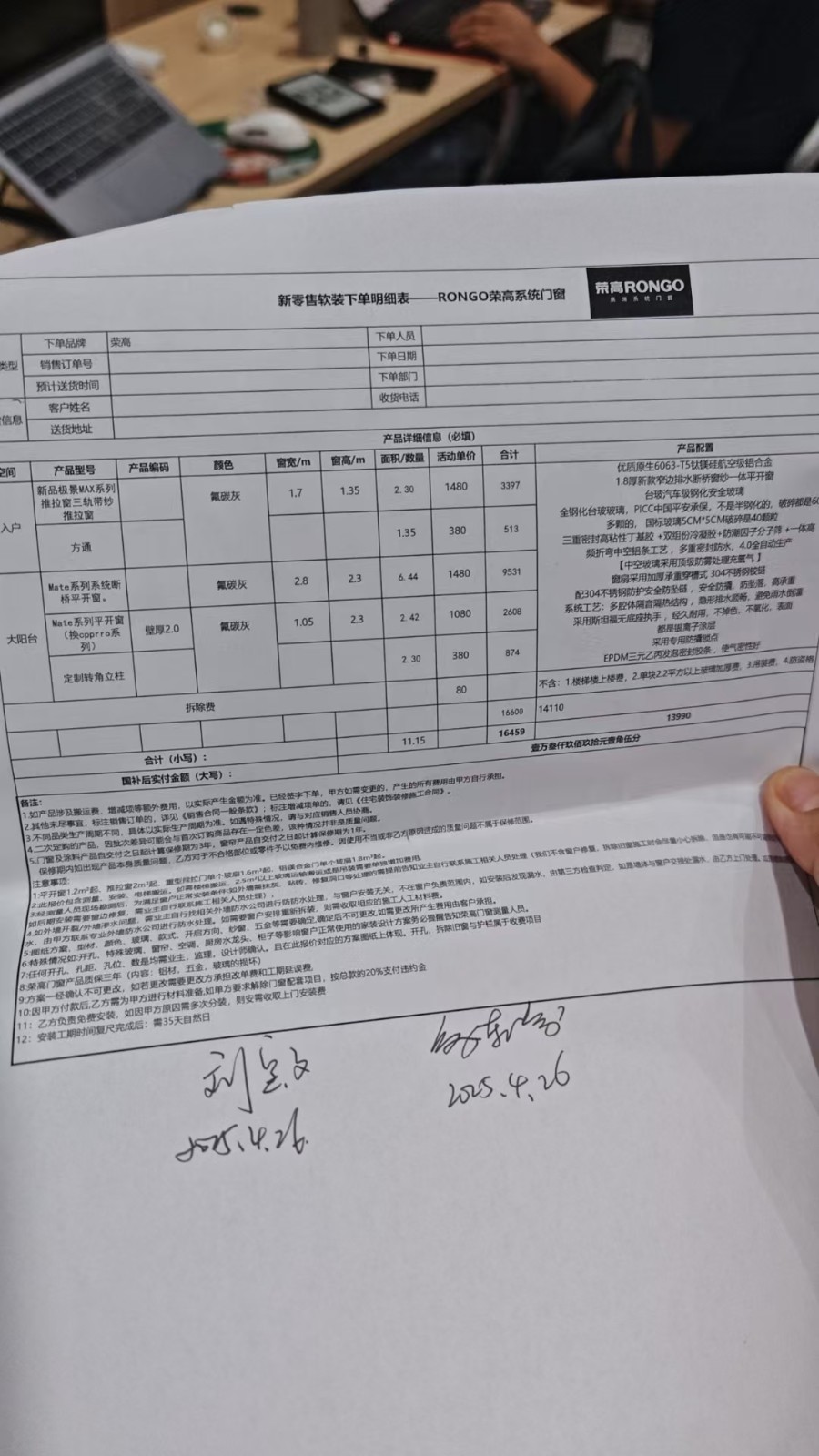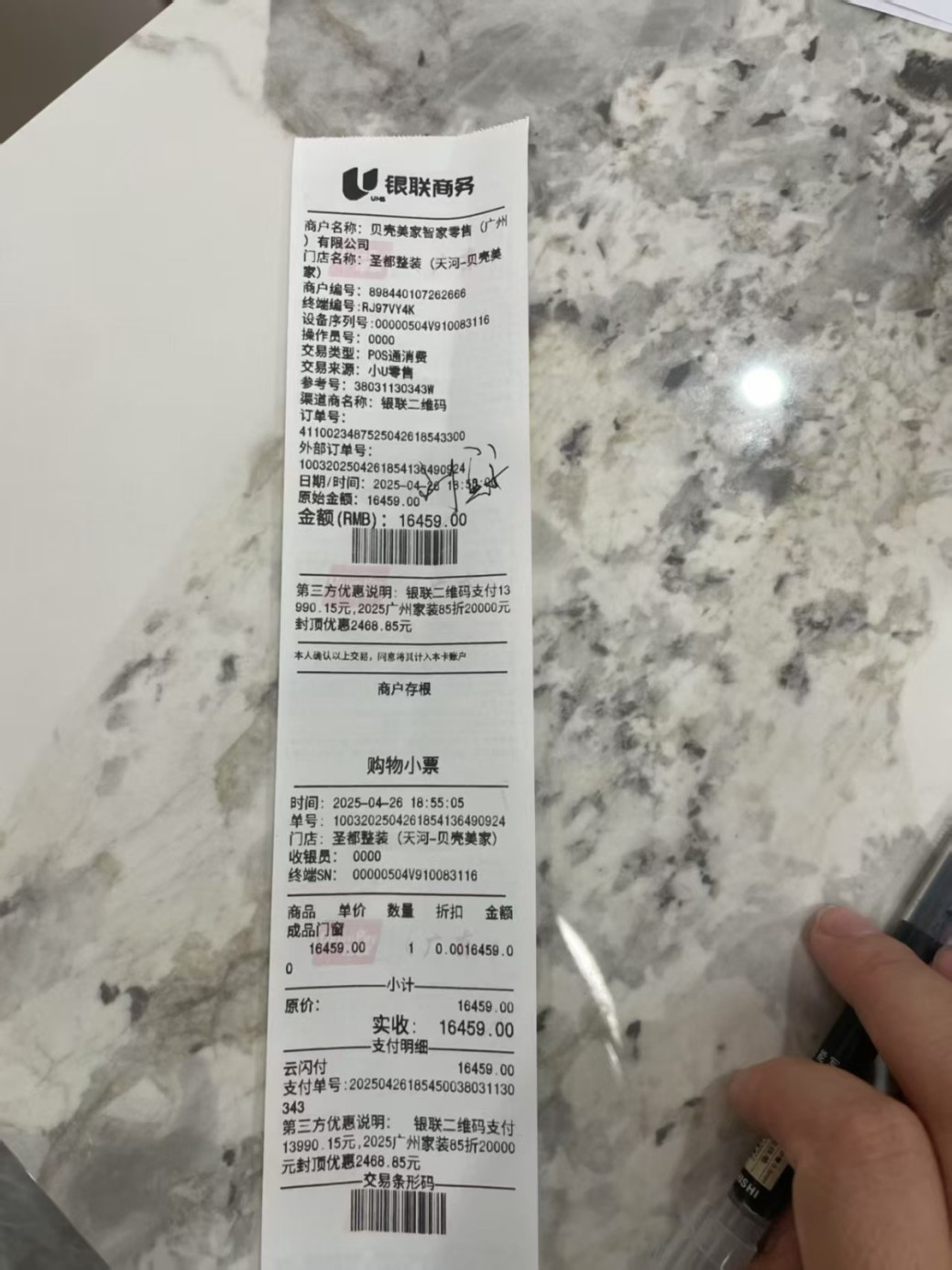 1.合同與事實不符:“我于4月21日與 貝殼美家智家零售(廣州)有限公司 簽約封窗合同,合同明確約定玻璃品牌為臺玻玻璃,五金品牌為斯坦福。但完工后,安裝的玻璃經(jīng)查詢?yōu)榉鹕绞心虾>A崢I(yè)有限公司生產(chǎn),五金上均無任何品牌的標(biāo)識。”