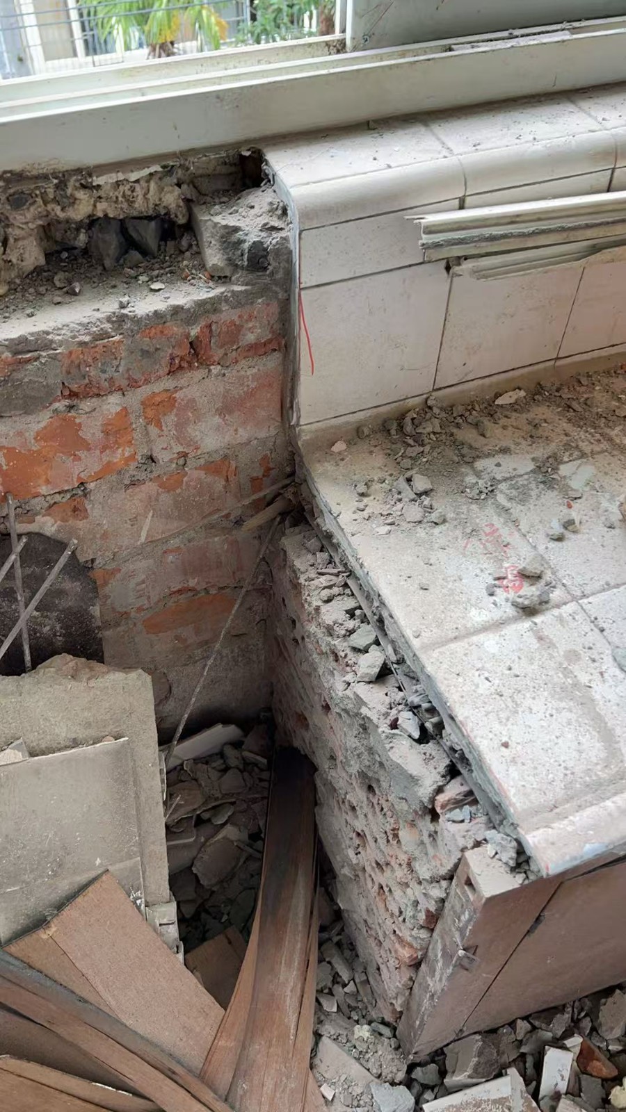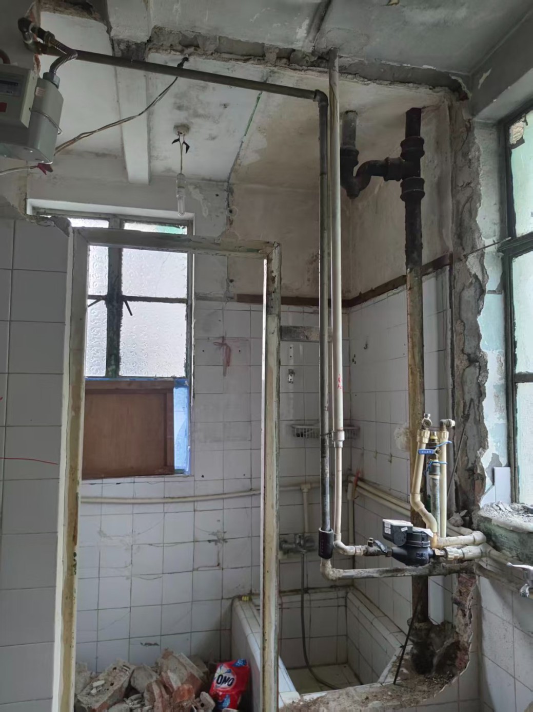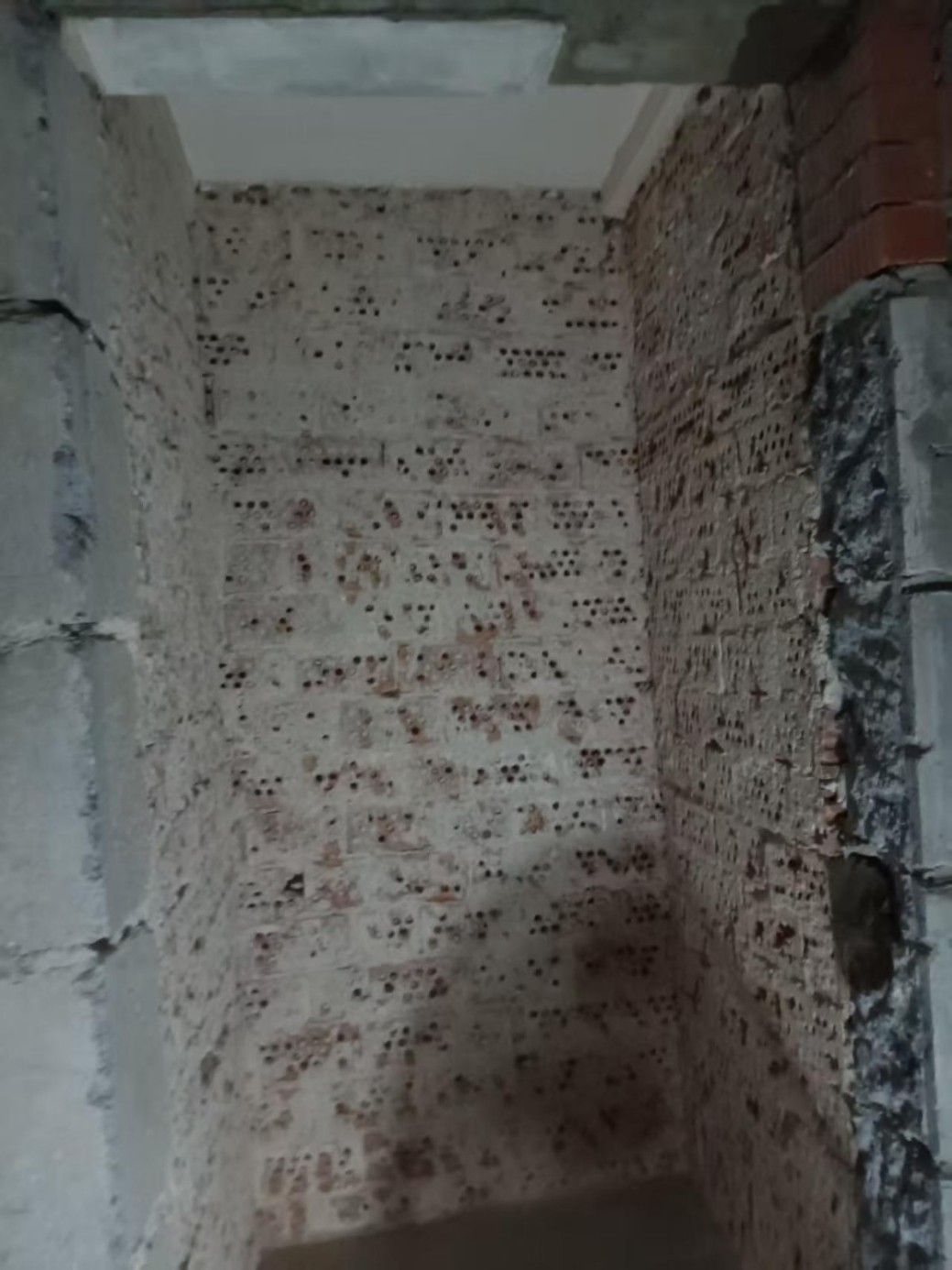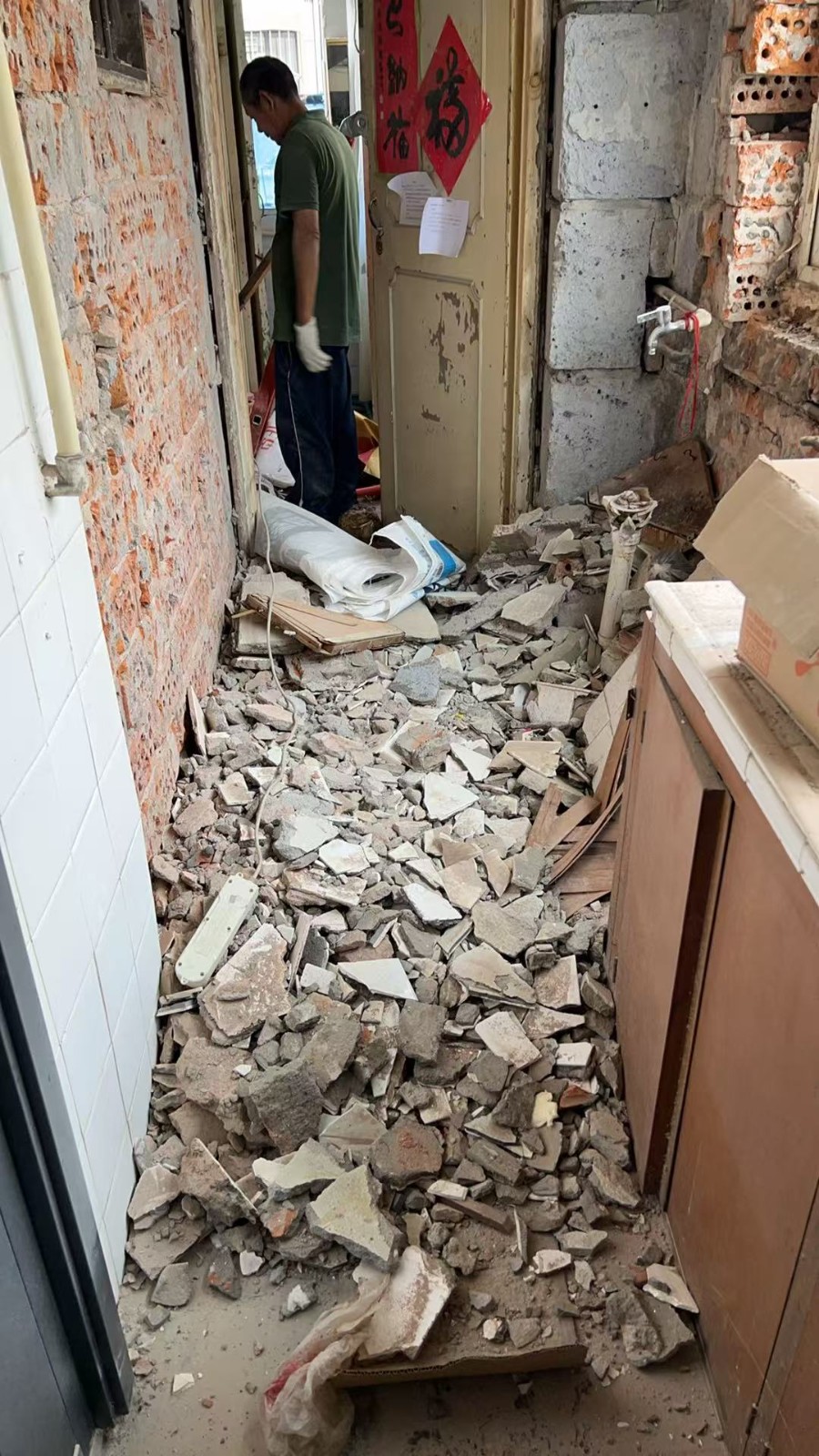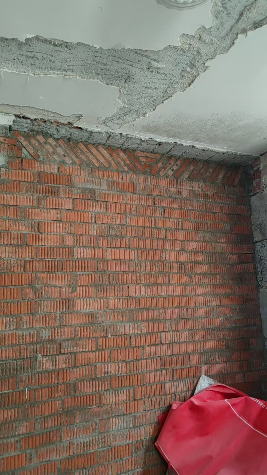 在拆除過程中,我們發(fā)現(xiàn)原實體墻有空鼓現(xiàn)象,第一時間拍了照片發(fā)給了業(yè)主,然后我們對空鼓墻體進行徹底拆透,便于后期對墻體加固,這個隱蔽的情況,我們也和業(yè)主承諾了,不會增加額外的費用,業(yè)主非常開心和認可。