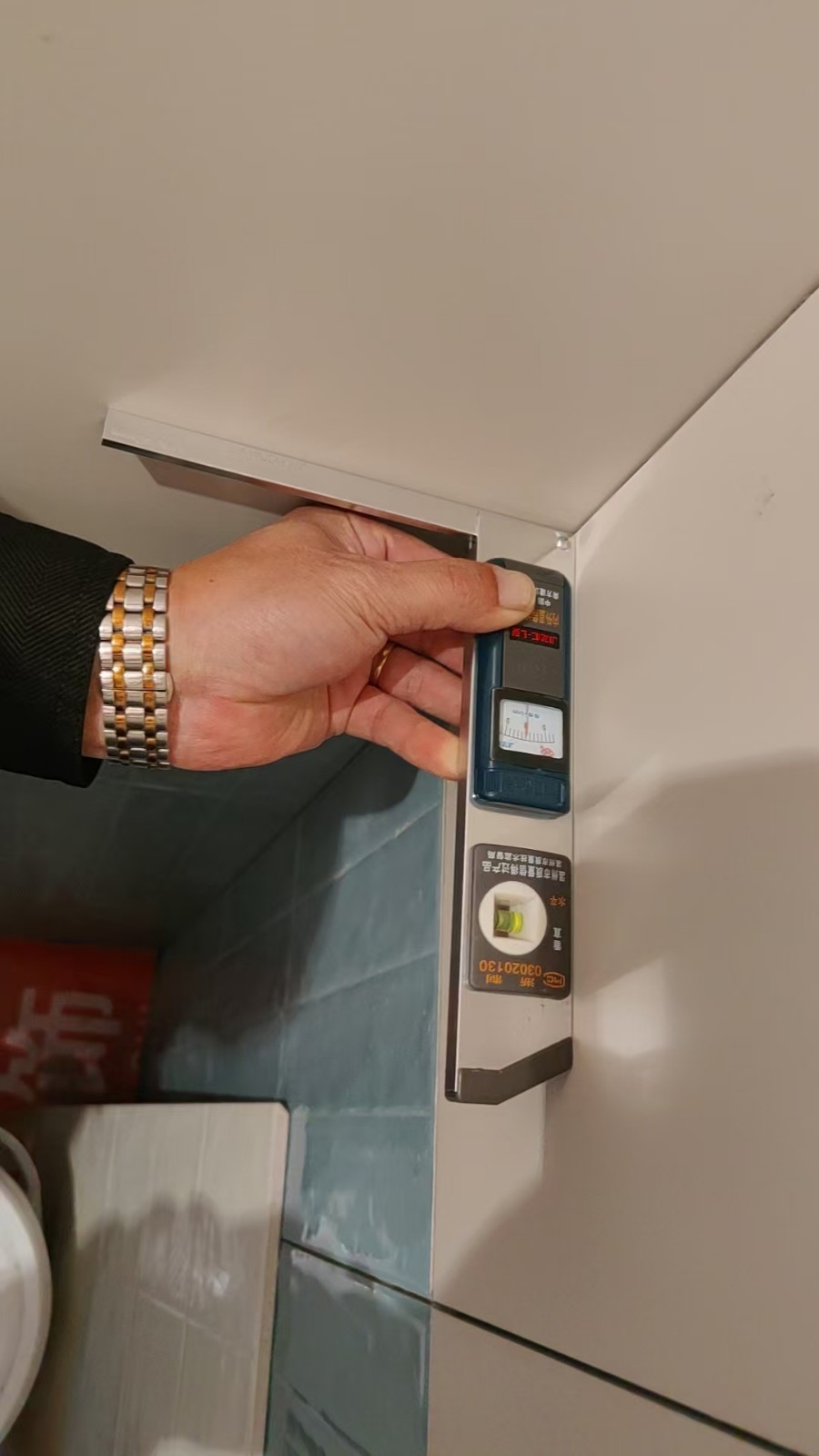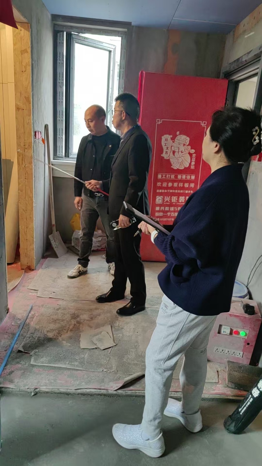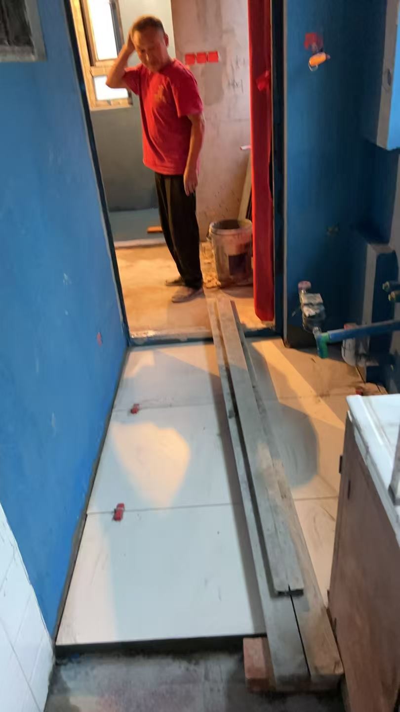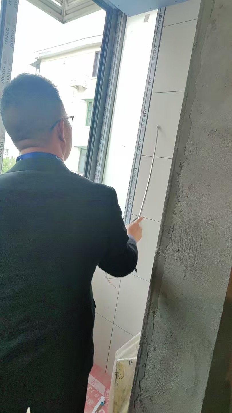 泥工階段有部分瓷磚已經(jīng)貼好了, 項目負責人繆工時刻到工地進行驗收, 水平靠尺進行驗收,先做內(nèi)部自檢工作,今天邀約了業(yè)主和裝潢網(wǎng)楊老師和邱老師現(xiàn)場共同驗收,驗收的標準都是工具標尺,規(guī)范和標準,感謝兩位老師今天的到位,對我們監(jiān)督和建議,后續(xù)會越來越好的做出完美工藝。