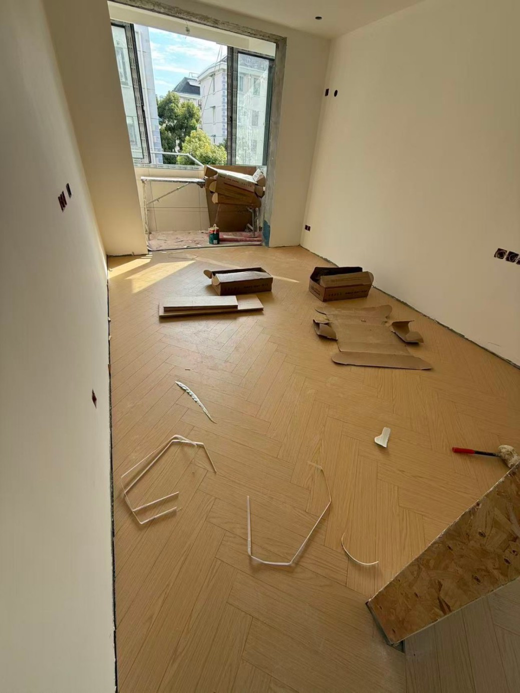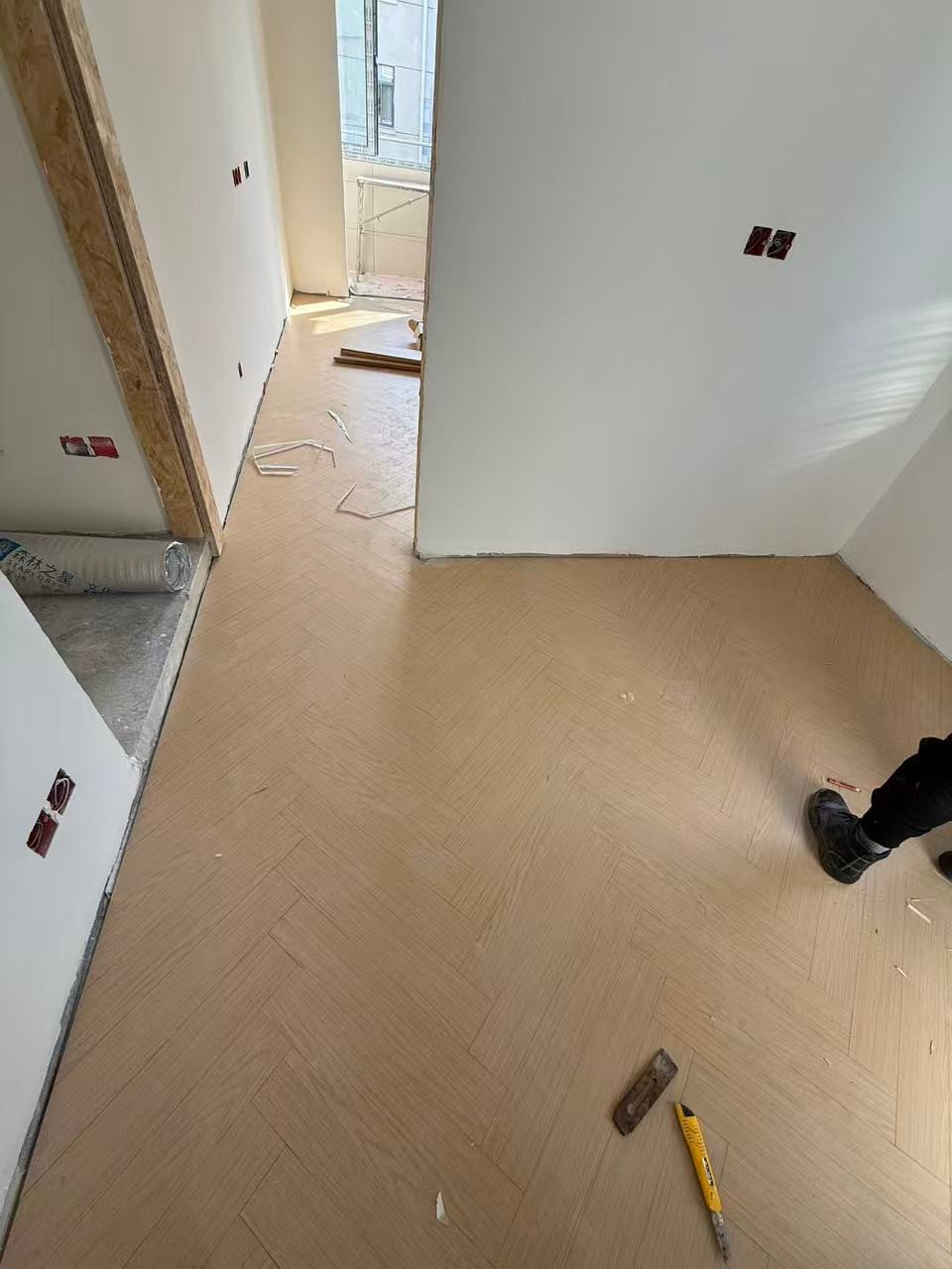 現(xiàn)階段鋪設(shè)地板,油漆已經(jīng)完工,后續(xù)準備安裝木作進入安裝流程。