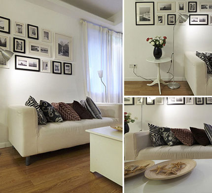 概要: 黑與白的搭配一直是永不退落的時(shí)尚潮流。小戶型的空間,裝修色彩復(fù)雜會(huì)添加空間的累贅感,有時(shí)候色彩的簡(jiǎn)潔比設(shè)計(jì)的簡(jiǎn)潔更能節(jié)省空間?! 〖?xì)節(jié)看下客廳的各個(gè)局部,以老照片來裝飾背景墻,很符合80后的情感。黑白照片是最初的回憶。抬腳的沙發(fā),易于衛(wèi)生清潔。客廳里簡(jiǎn)潔的家具,給空間劃出很多留白,為后期生活帶來很多便利。