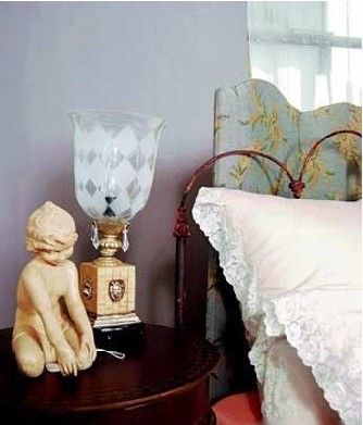 九,床品的搭配。紫色總是最符合女人心底深處的浪漫狂想,但在使用紫色布置床頭時(shí)最好有所克制,因?yàn)樯释哂邪凳玖Γ^于艷麗的顏色容易讓人情緒亢奮,不易入眠。妥協(xié)之道在于:買一張紫色大床,配以淺紫或米白色床品,加上白色或者米色靠墊,如果還不夠滿足你心底的紫色狂想,可以再加一些臺(tái)燈之類淡紫色配件。