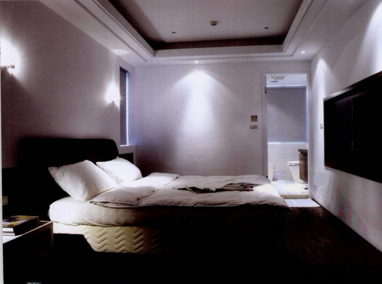 都市白領(lǐng)的工作都忙碌的,鑒于業(yè)主的工作原因。本案的特別重視紓壓設(shè)計(jì),這一點(diǎn)特別體現(xiàn)的臥室上。設(shè)計(jì)師縮小一個(gè)房間,讓主臥變大,床屋劈面以鐵灰色噴漆為底,讓黑色電視屏與之呈現(xiàn)多層次色彩。具大量收納空間的更衣室,門片用輕巧的鋁件搭配鐵灰色噴漆,與劈面色彩相互呼應(yīng)。干濕分享的主浴,用清秀的強(qiáng)化玻璃與鏡柜設(shè)計(jì)讓空間放大。依屋主需求增加的客浴,特別選用嵌入劈面的馬桶,上方為收納鏡柜。
